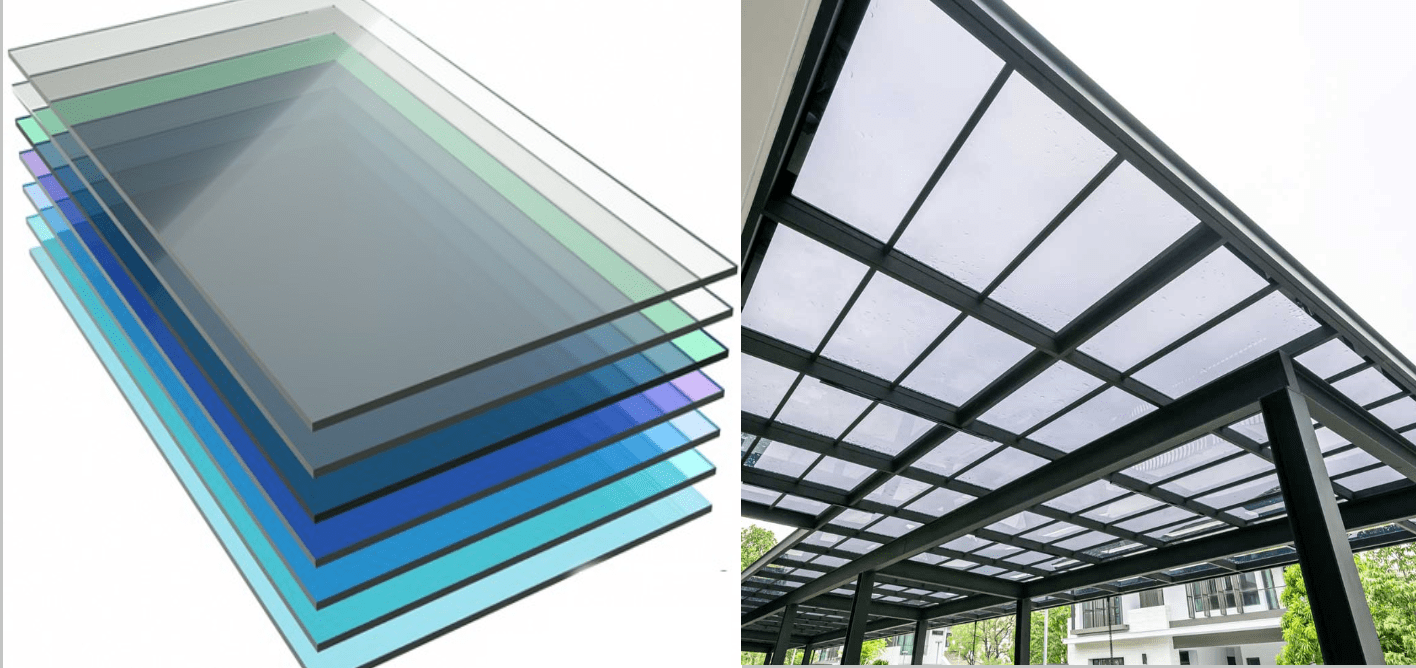 mà không làm mất đi tính thẩm mỹ của công trình. Cấu tạo của mái che nhựa thông minh thường bao gồm các tấm polycarbonate,